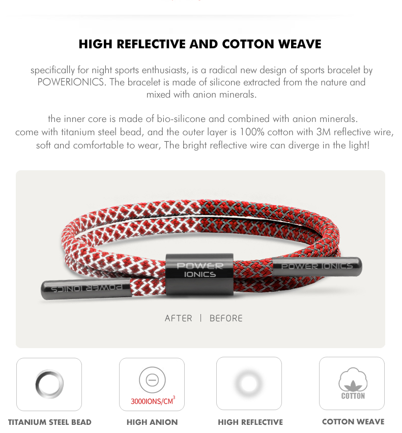 Power Ionics Weave Reflective Braided Rope Anions Sports Bracelet