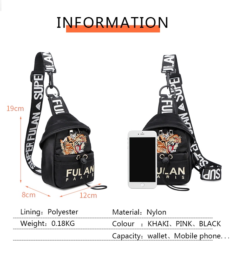 Colour : Black , Khaki, Pink Material : High Quality Nylon Size : 19*8*12CM Product Net Weight: 0.18kg