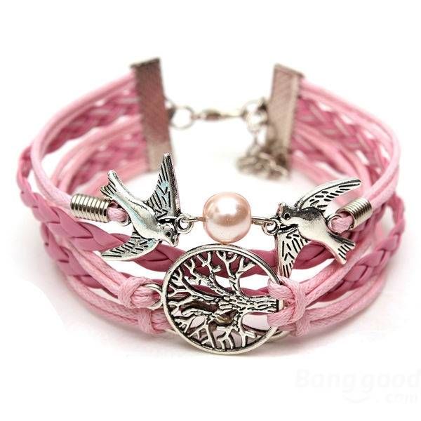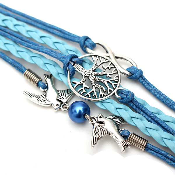 Tree Of Life Infinity Love Bird Leather Bracelet