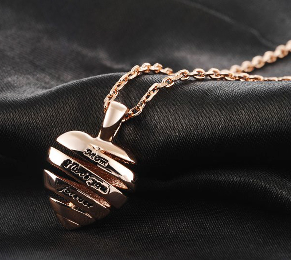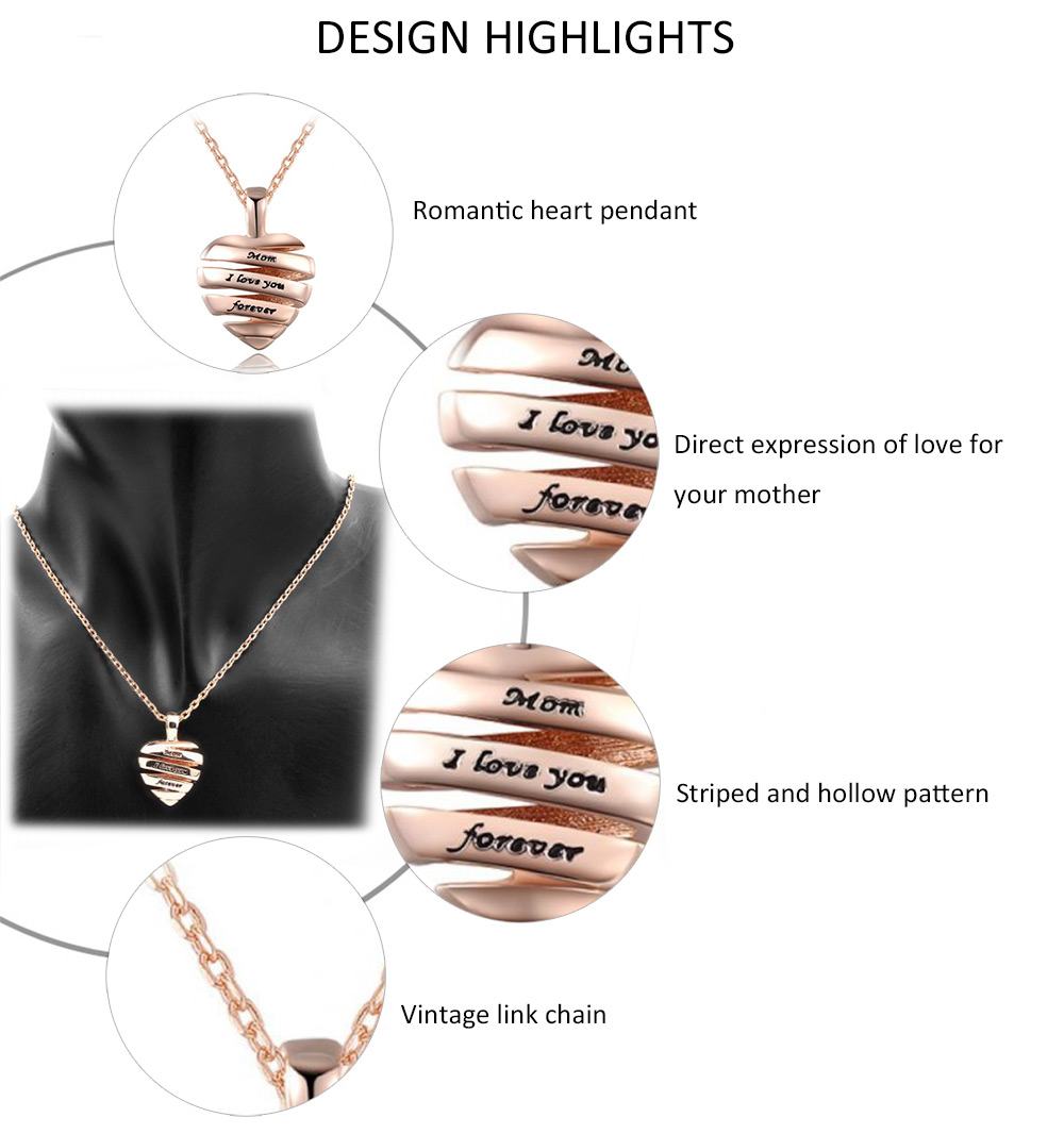 Charming necklace with heart pendant striped hollow pattern letter - Mom, I Love You Forever