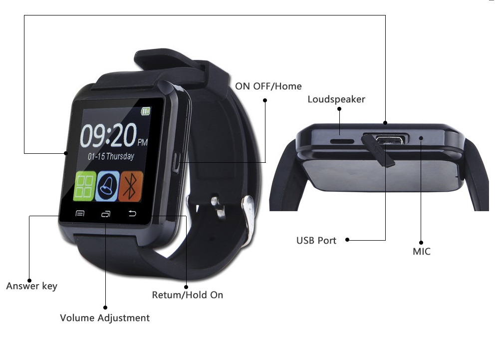 Original U8 Smartwatch Receive/make calls, Pedometer, Sedentary Reminders - For Android iOS