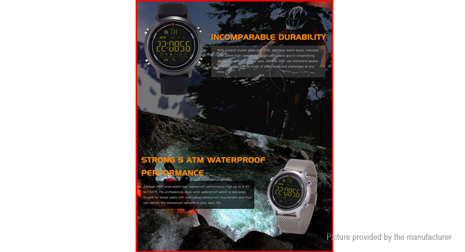 Zeblaze VIBE wrist watch has waterproof performance high up to 5 ATM/164 ft, the professional-level wrist waterproof watch is delicately forged for those users with meticulous waterproof requirement and thus can satisfy the waterproof demand in your daily life.