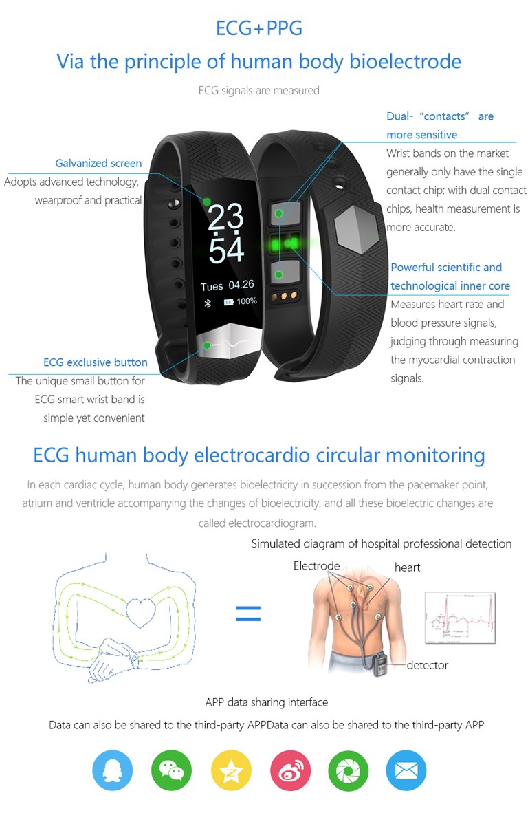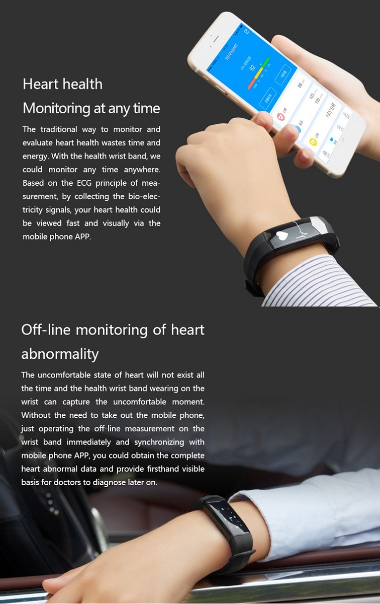 CD01 Pro Version Smart Bracelet Fitness Tracker - ECG/Heart Rate/Blood Pressure monitor/Pedometer/Smart reminder