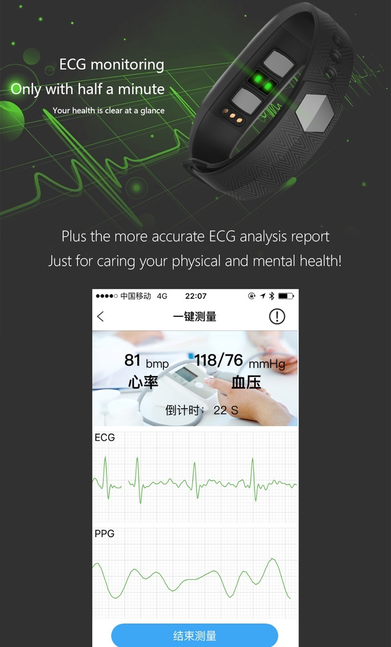 • ECG+PPG (Electrode+Photoelectric) Real-time Heart Rate Blood Pressure Monitor