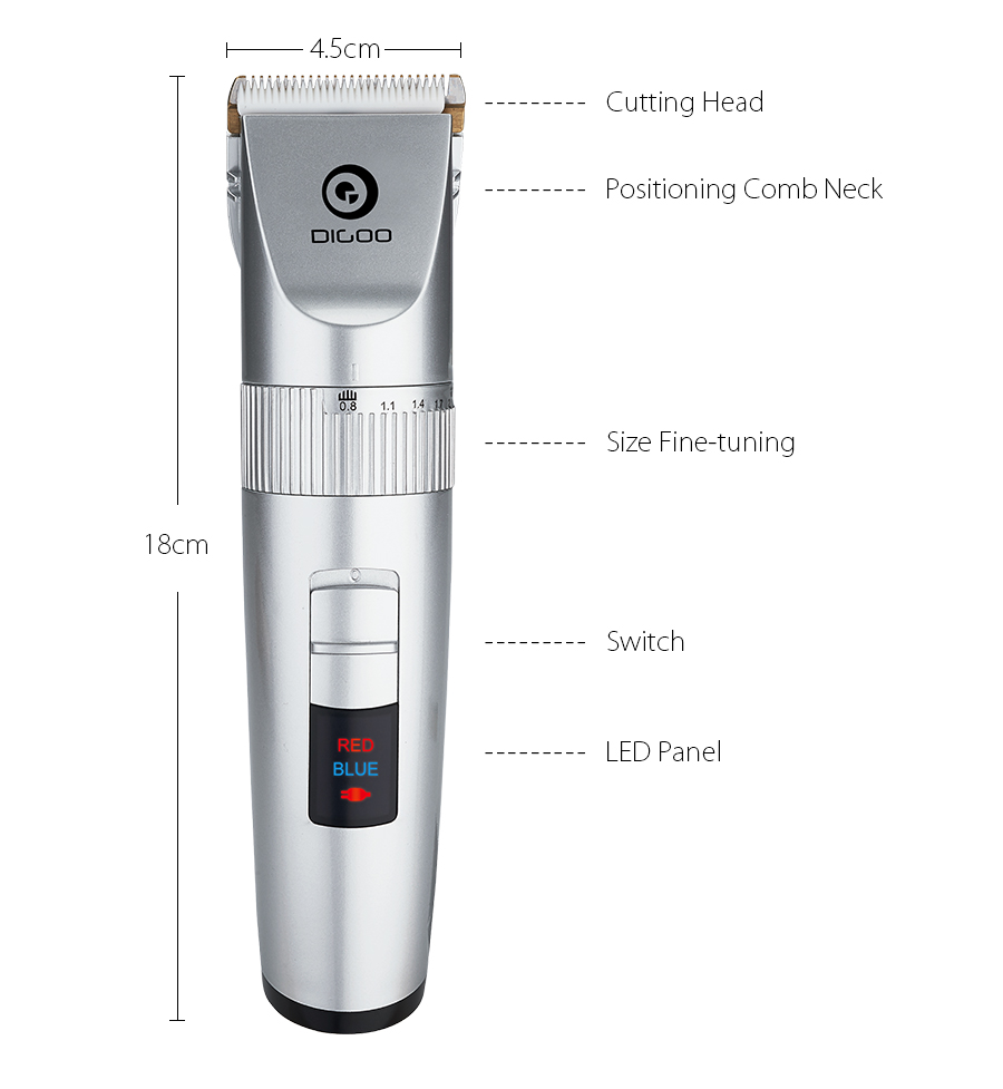 Digoo USB Ceramic Blade Hair Trimmer with Comb! Rechargeable Double Blade 5-Speed LED indicators.