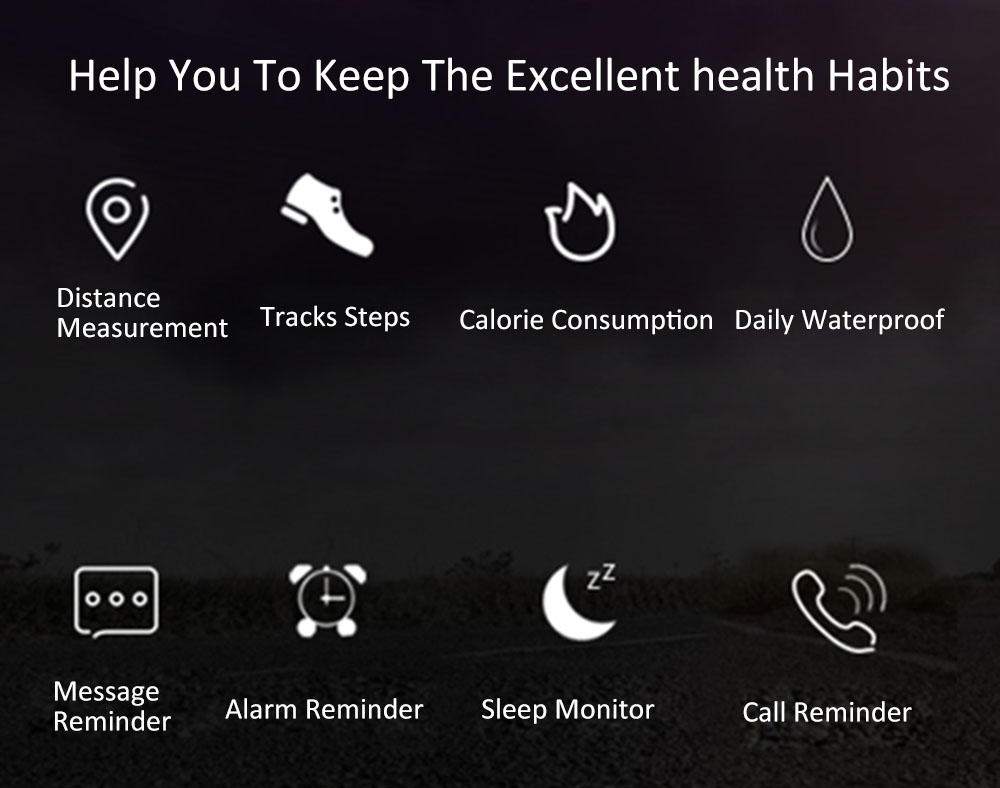 TW64 Bluetooth 4.0 Fitness Tracker Sport Bracelet is a smart band watch that measures your daily job and activity. With an ergonomic and well-designed appearance and at a very affordable price, this multi-functional smart watch wristband is perfect in: tracking steps, distance measurement, calorie consumption management, monitoring your sleep cycle, time displaying, activity reminder (for drinking, sitting for too long, waking up) with a silent wake-up alarm. TW64 smart band watch is your perfect companion. Take it with you everywhere and keep a healthy record of your body. Band is made of TPU Polymer composite materials. Light as feather, with advanced colors that lasts. Accurate data synchronization. Bluetooth 4.0, IP67 waterproof standard! Dustproof!