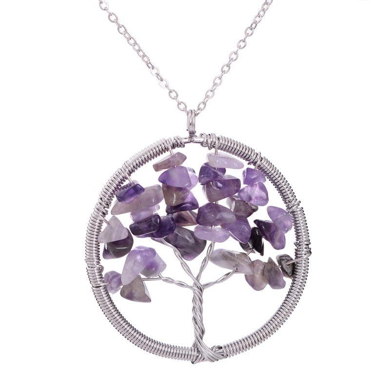 Rainbow 7 Chakra Amethyst Tree Of Life Quartz Wisdom Tree Necklace