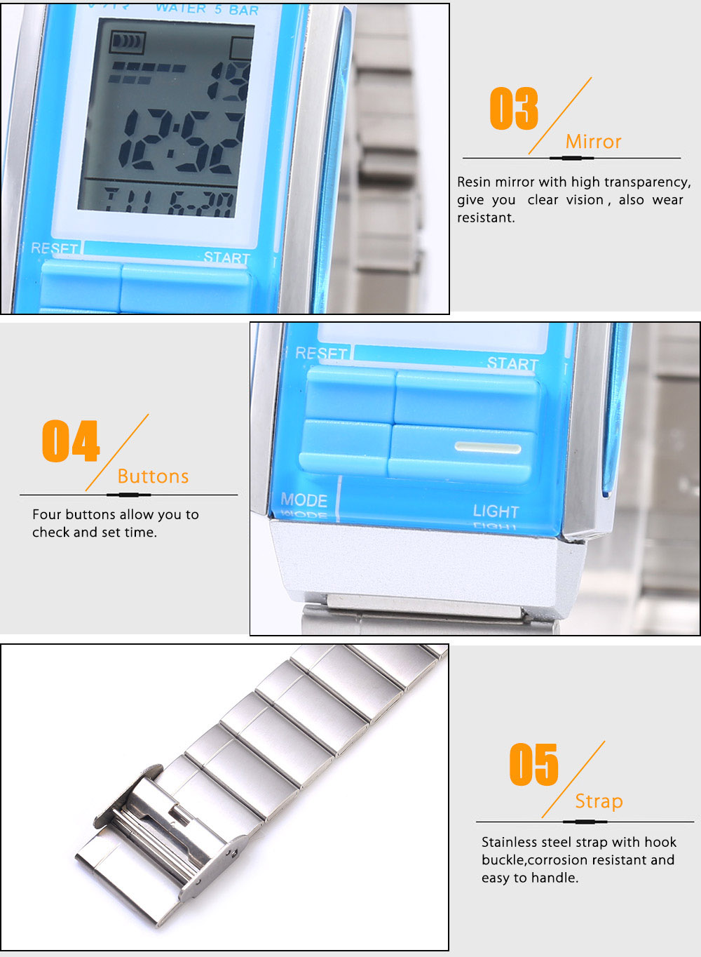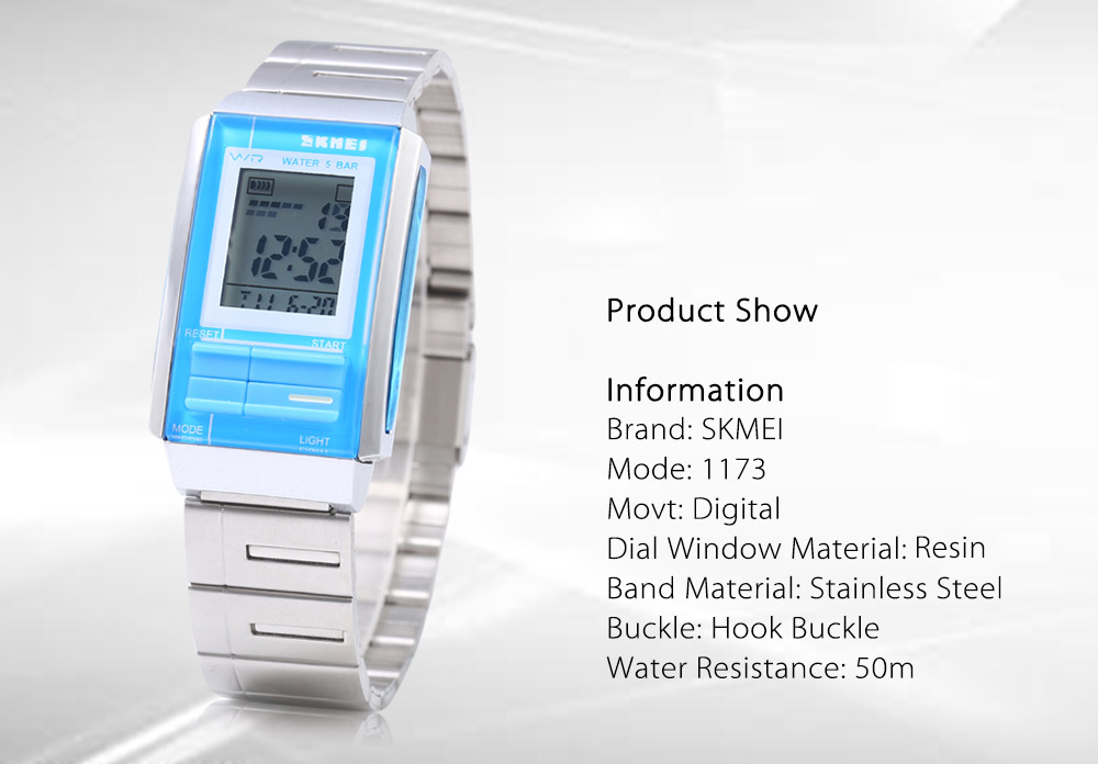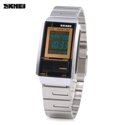 LED Digital Watch Stainless Steel Water resistant - 50m, Alarm, Back Light, Chronograph