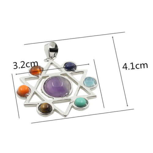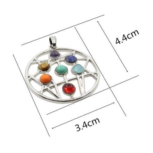 Reiki Chakra Healing Moon Cross Beads Silver Pendant Necklace