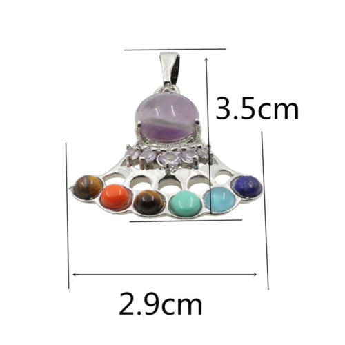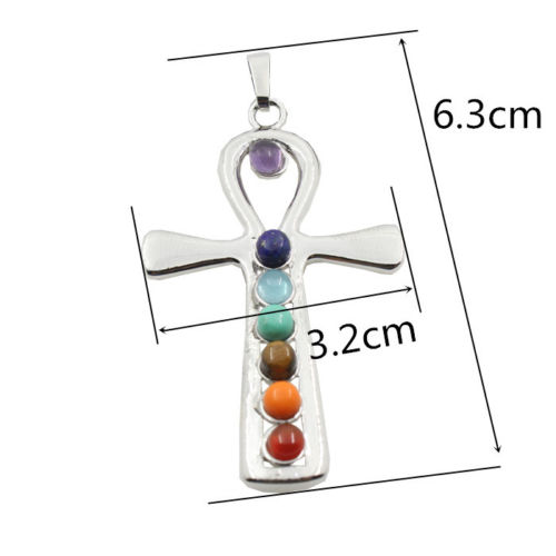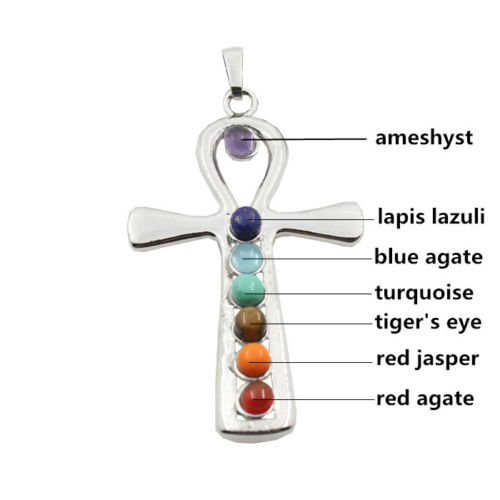 Reiki Chakra Healing Moon Cross Beads Silver Pendant Necklace