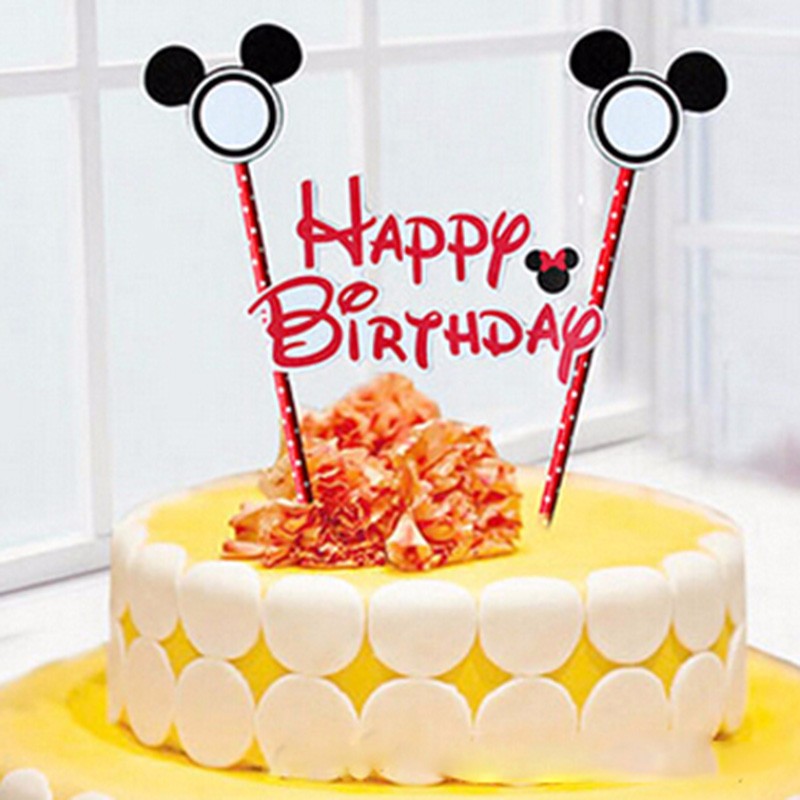 1set 2 pcs Mickey Minnie mouse theme happy birthday cupcake cake topper flags