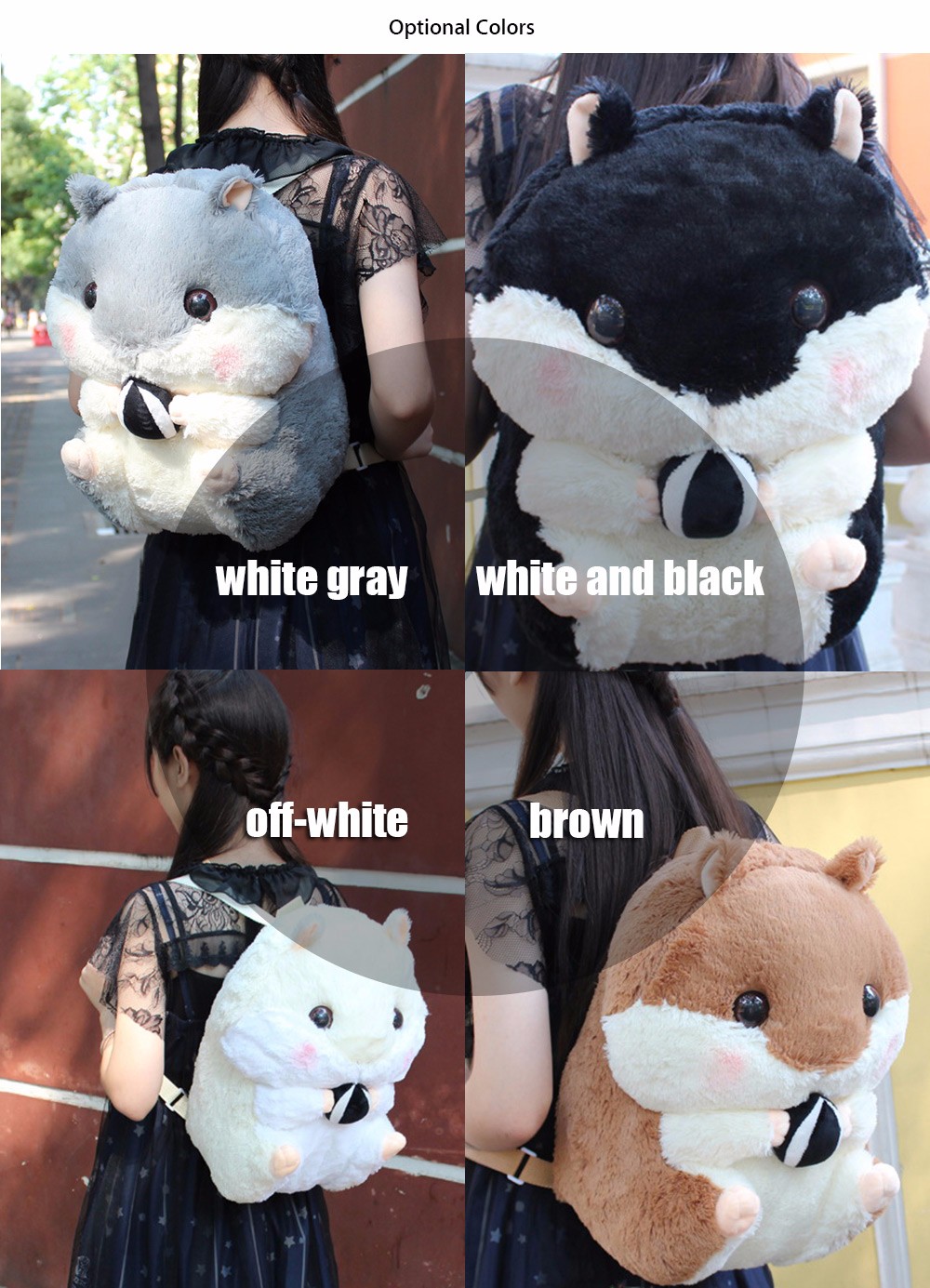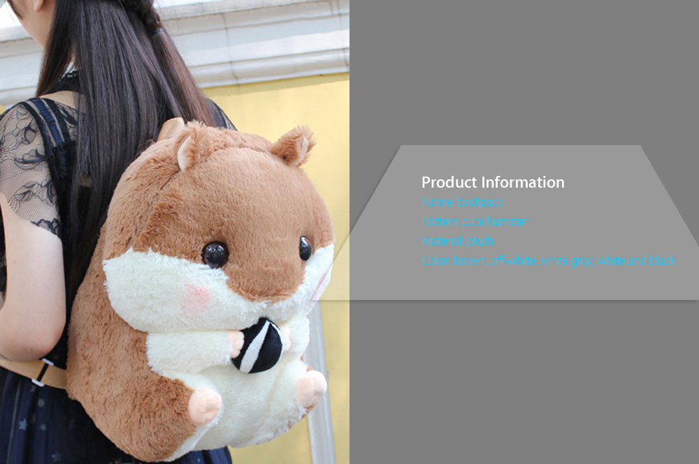 You will adore this! Cute and refreshing hamster shape Backpack featuring Large Capacity, fine workmanship, soft plush fabric and practical structure, is a perfect gift for you, kids, friends!