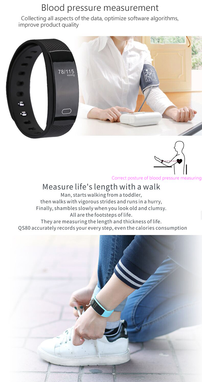 Fitness Tracker QS80 Smart Bracelet Blood Pressure Heart Rate Monitor