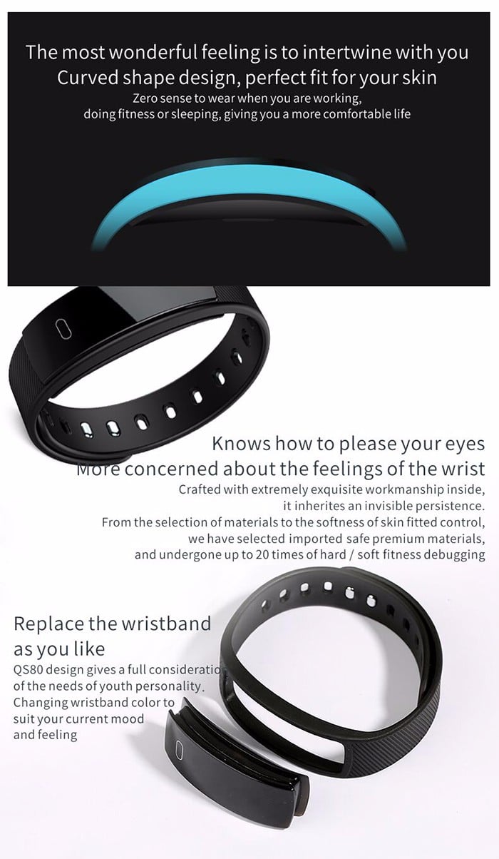 QS80 Smart Bracelet Blood Pressure Heart Rate Monitor