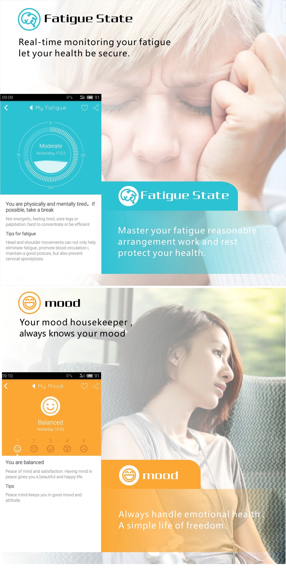 • Mood condition detecting: Real-time detect your mood to remind you always stay in a good mood.