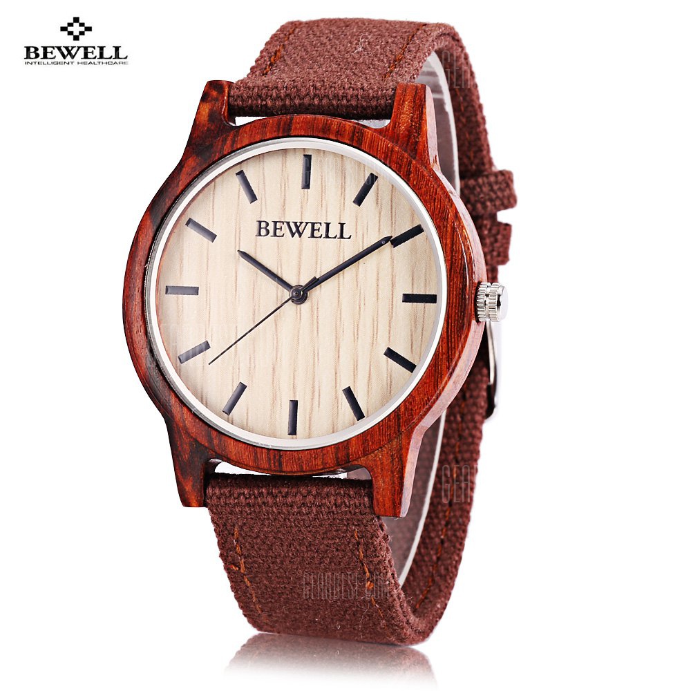 Bewell ZS Unisex Quartz Watch Japan Movement Wooden Case Canvas Band Wristwatch - Red Sandalwood