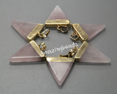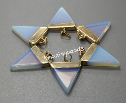 Gold Plated Triangle Natural Stone Quartz Pendant - 5Pcs