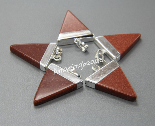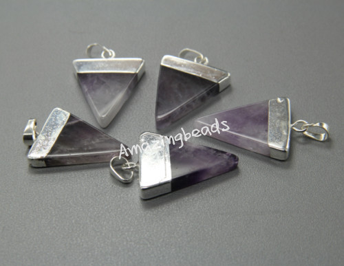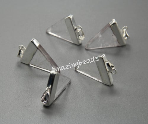 Silver Plated Triangle Natural Stone Quartz Pendant - 5PCS