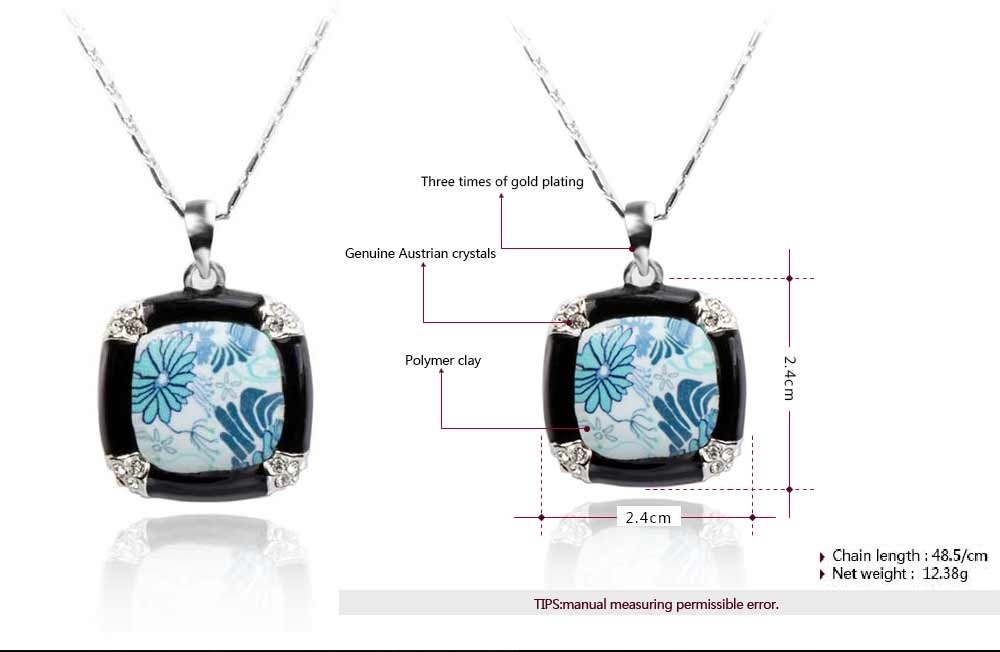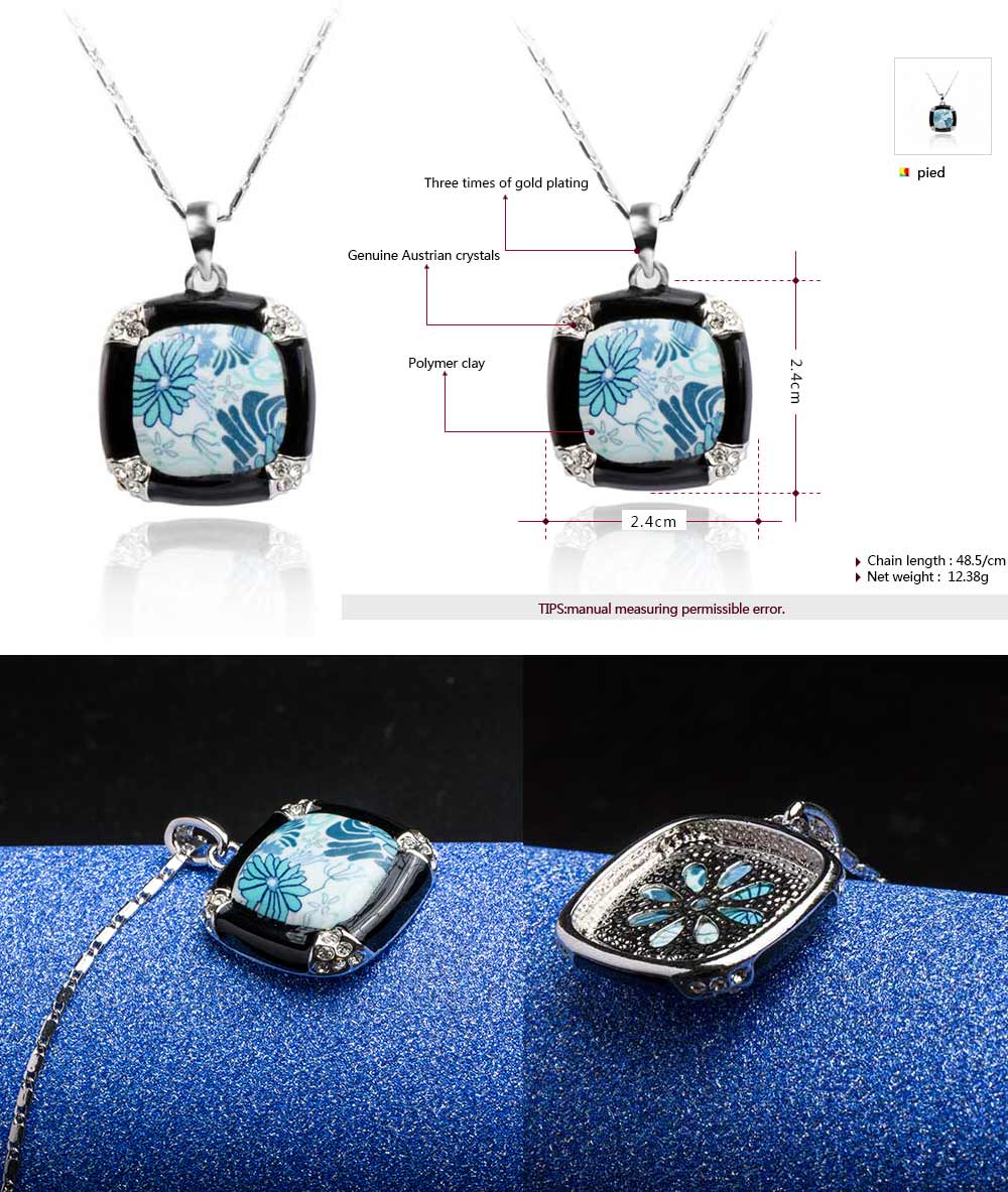 Porcelain Pattern Austrian Crystal Pendant Necklace