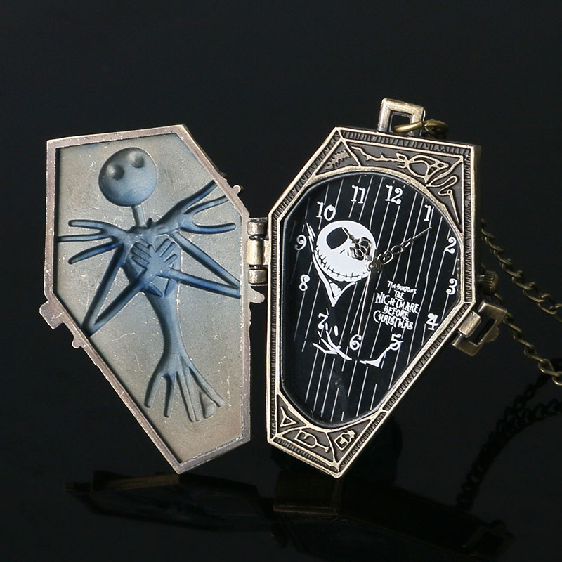 Nightmare Before Christmas Quartz Pocket Watch Retro Antique Pendant Necklace