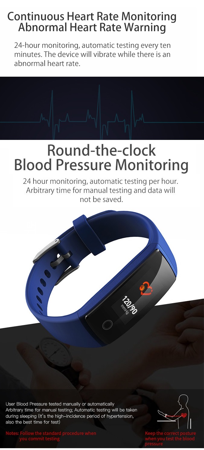 •Heart Rate Monitoring and Abnormal Reminder: Continous Heart Rate monitoring. Remind you as soon as it appears abnormal data.