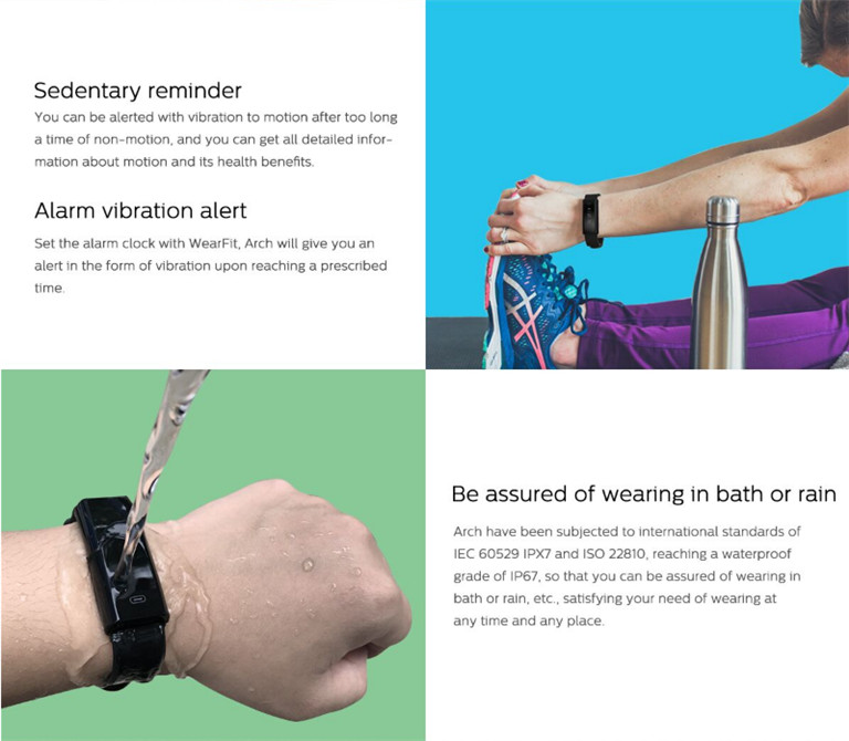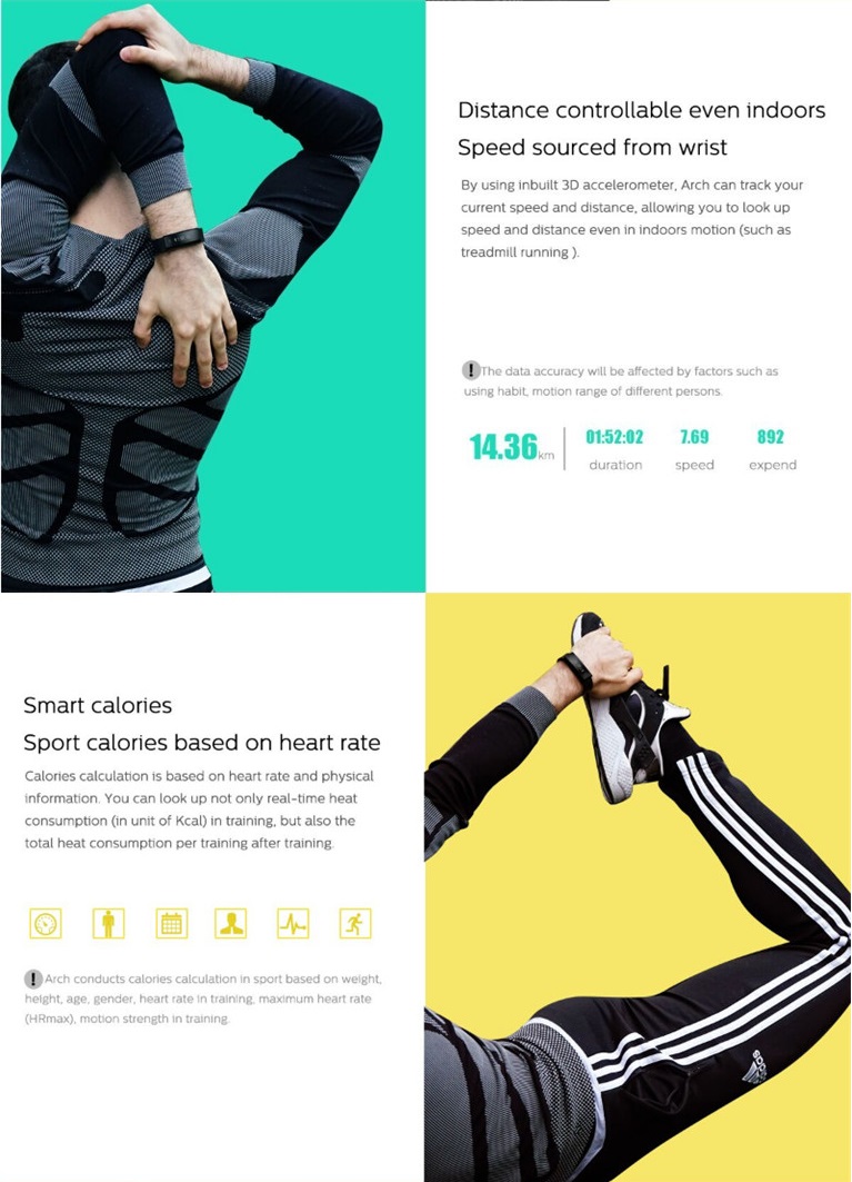 Arch is a gym tracker, elegant and compact meeting fashion and function in style. With high-definition OLED screen, you can obtain all the information you need. With a range of smart colors and a secure buckle, wear your arch without fear. Combined with smart vibration, leave your phone in the pocket and check all your notifications conveniently on the Arch's screen.
