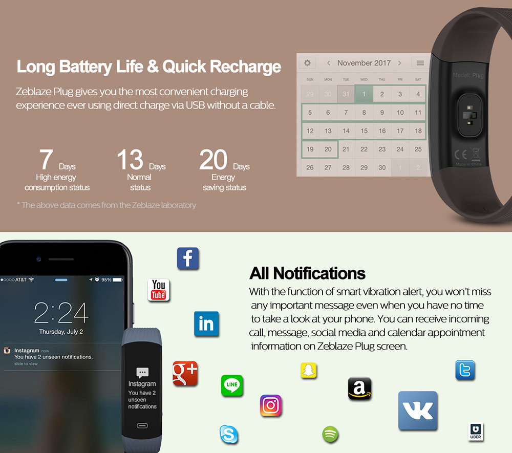 ZeBlaze Plug is a fitness tracker, elegant and with high performance Nordic 51822 kernel processor with buuilt in multiple sensors