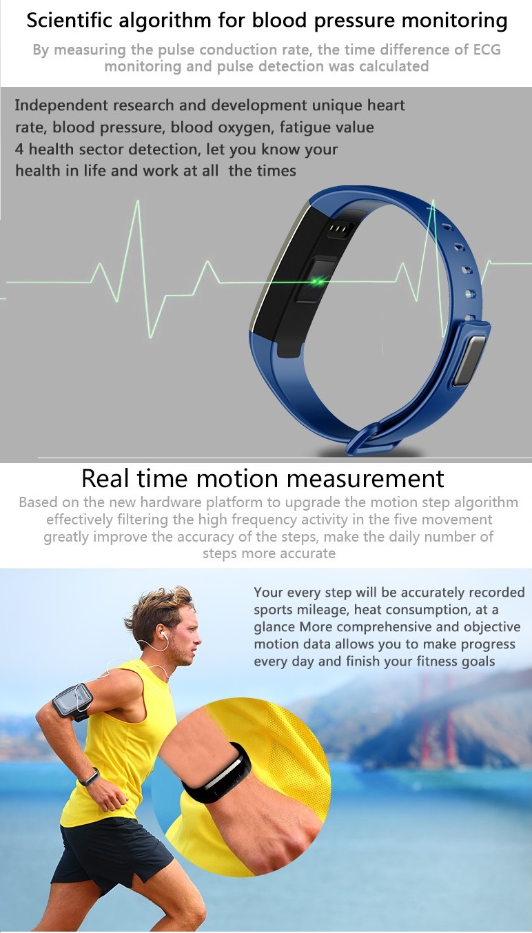 ● An OLED Display on the Bracelet - More convenient to read the time, heart rate, blood pressure, blood oxygen, fatigue level, steps, distance, calories
