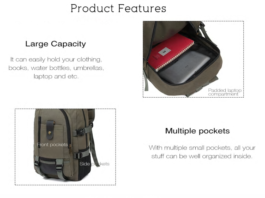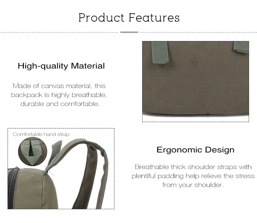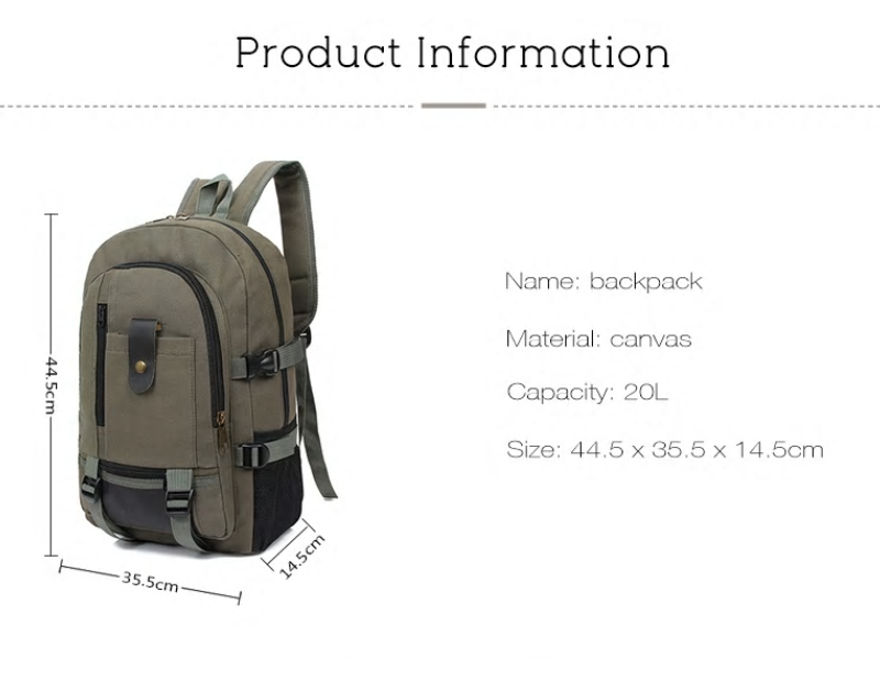 1 Trendy Outdoor Large Capacity Canvas Backpack