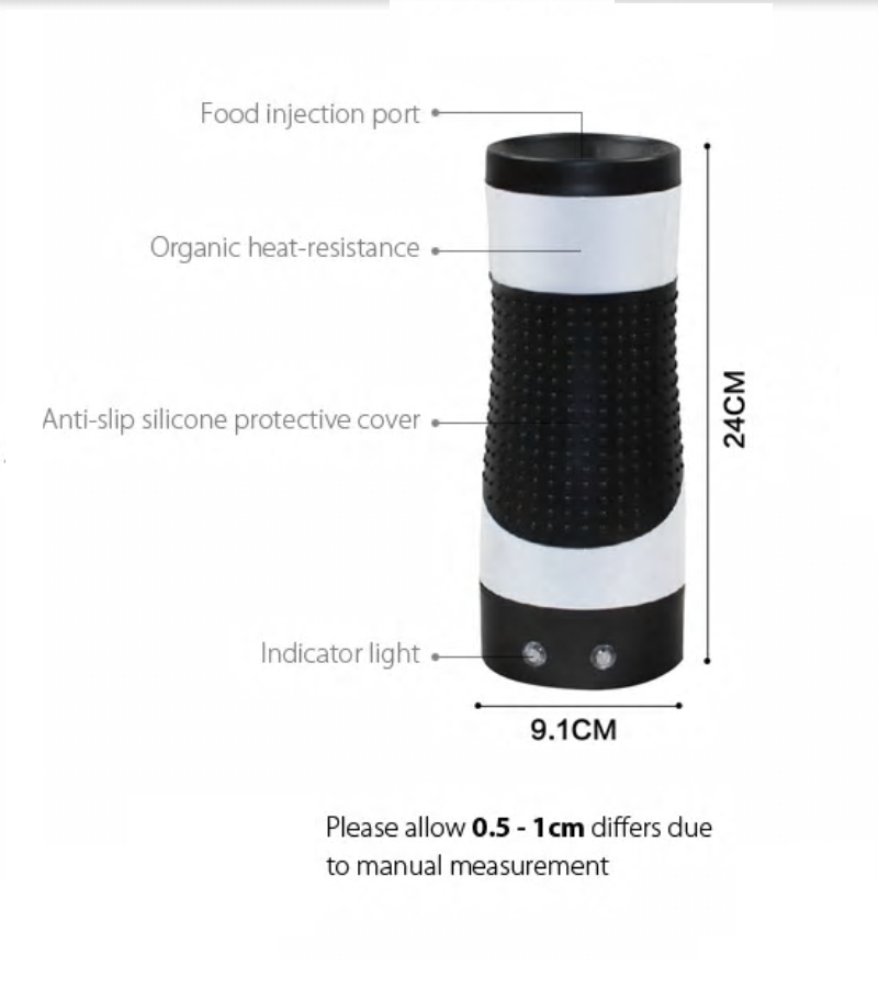 Size (L x W x H): 9.10 x 9.10 x 24.00 cm / 3.58 x 3.58 x 9.45 inches