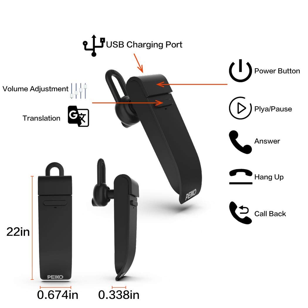 PeiKo Smart Wireless Bluetooth 4.2 Headphone Mini Translator with Mic 16-Language & Inter-translation