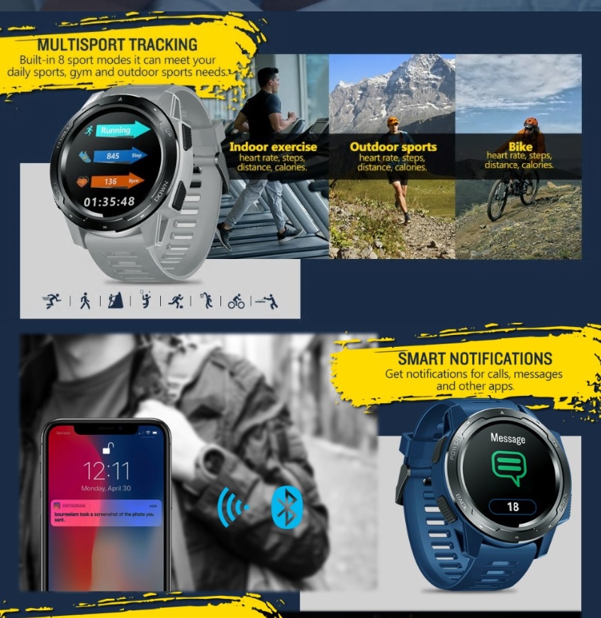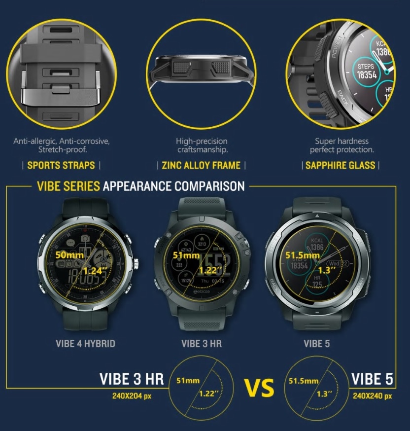 2019 MODEL! Zeblaze VIBE 5 GREENCELL Heart Rate Monitor 1.3inch IPS Full-round Color Display