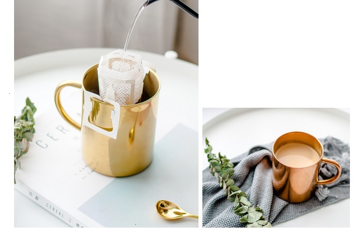 Stainless Steel Double Titanium Mug Gold/Gold Rose Coffee Cup Breakfast Milk Cup Mug 400ml