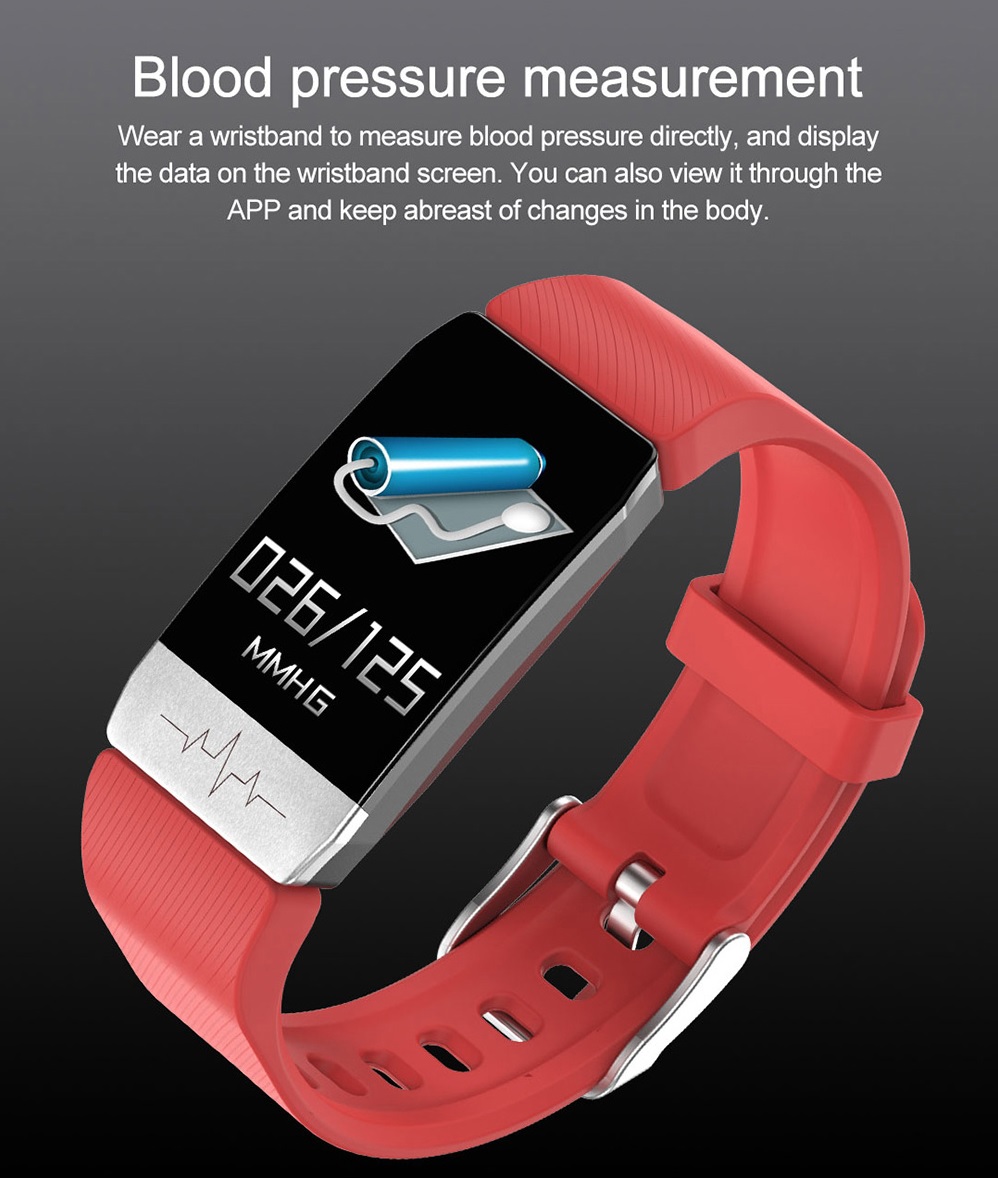 1 ECG Monitor Heart Rate Blood Pressure SpO2 Monitor Thermometer Health Care Smart Bracelet - Black