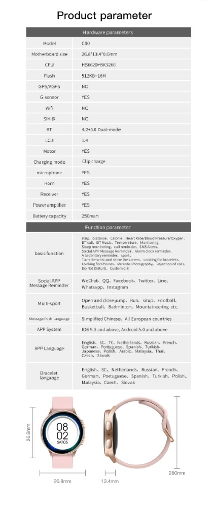 NEW! C10 HD Bluetooth Call Blood Pressure Oxygen Monitor Music Control Fitness Tracker Smart Watch
