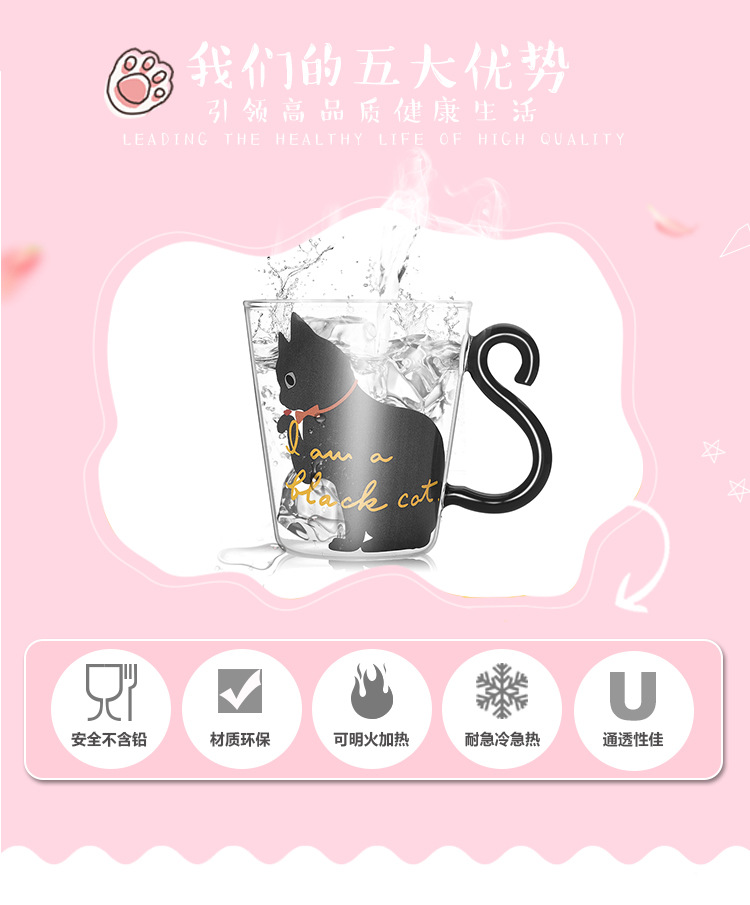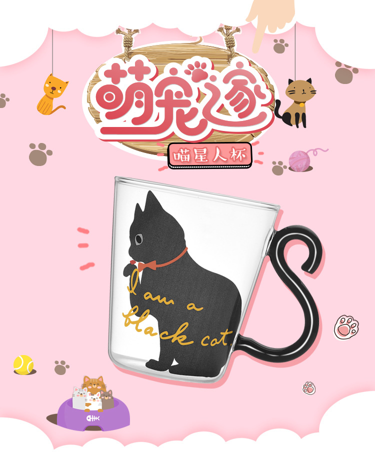 1 Hand blown Borosilicate 250ml Cute Creative Cat Glass Coffee Tea Milk Water Mug with Cat Tail Handle