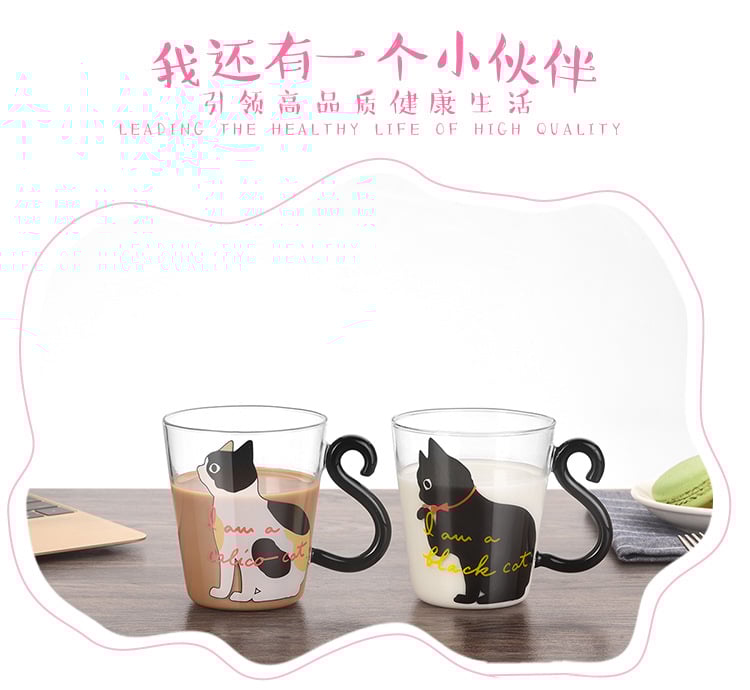 250ml Cute Creative Cat Glass Coffee Tea Milk Water Mug with Cat Tail Handle
