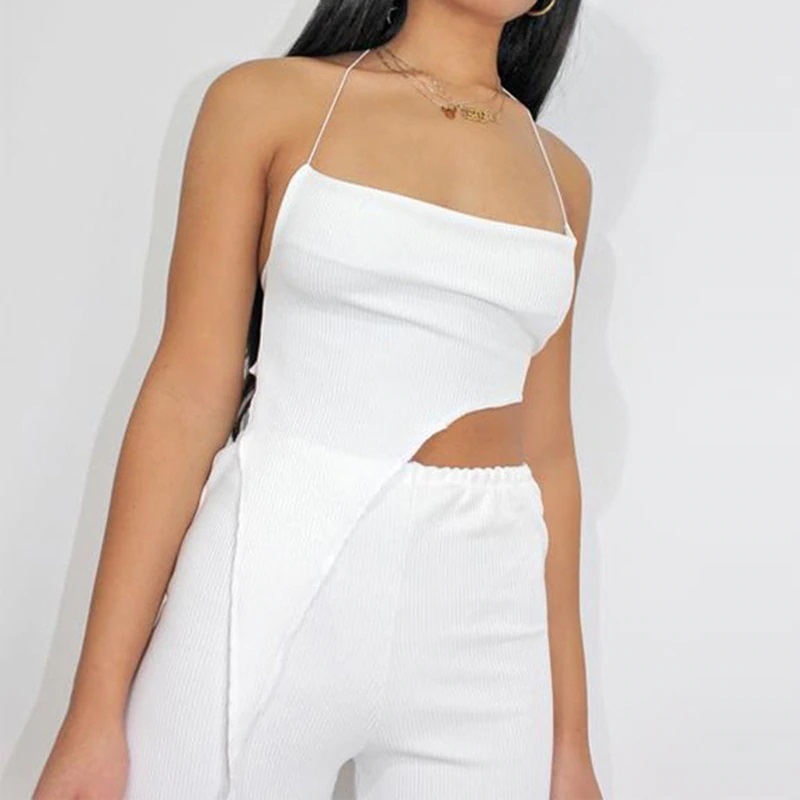 Sexy Crop Top Ladies Wrapped Top Backless Ribbed Sleeveless Tee