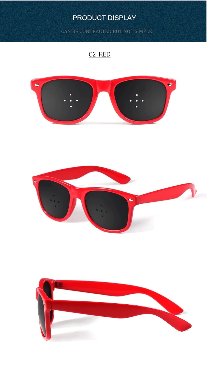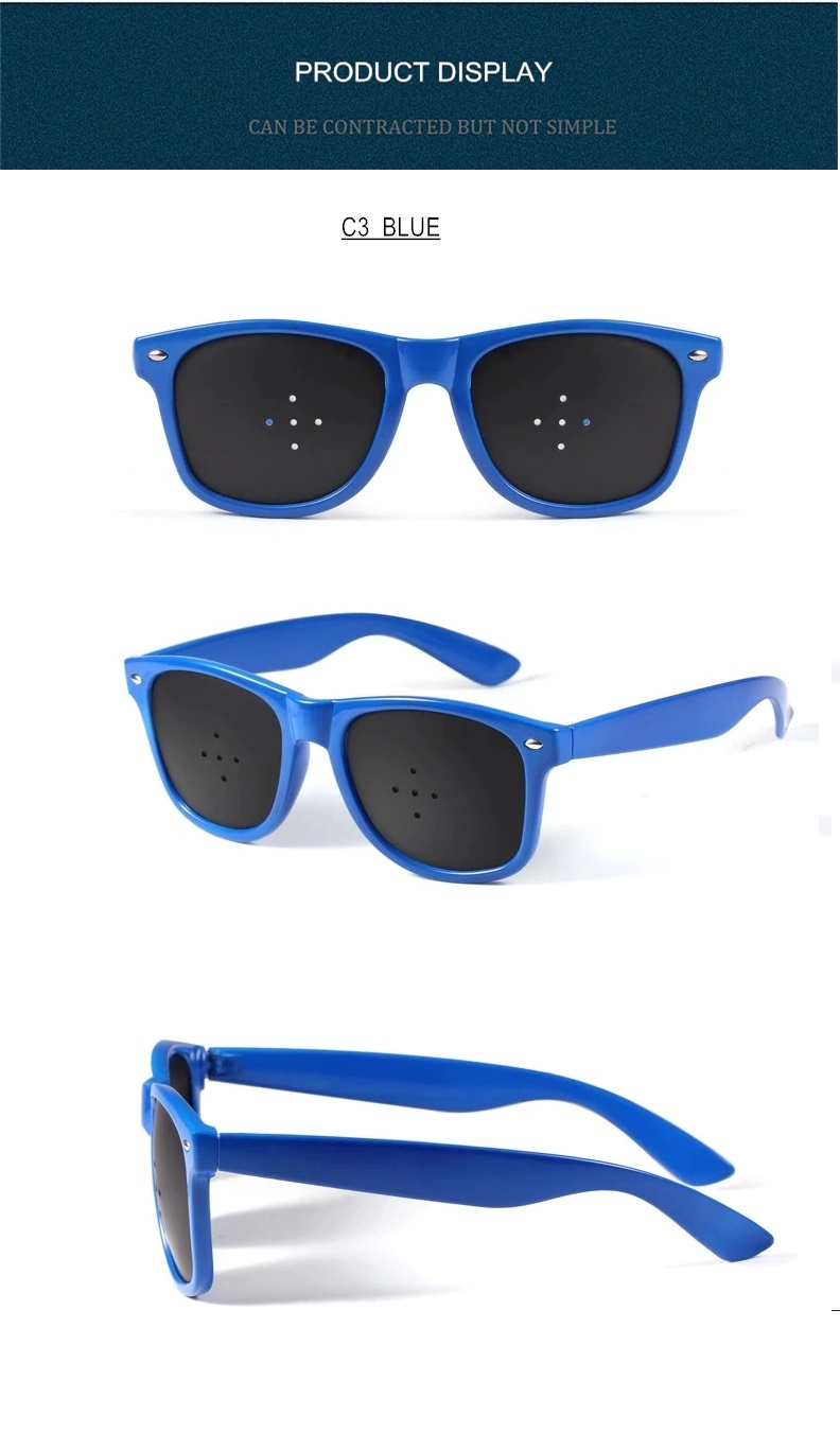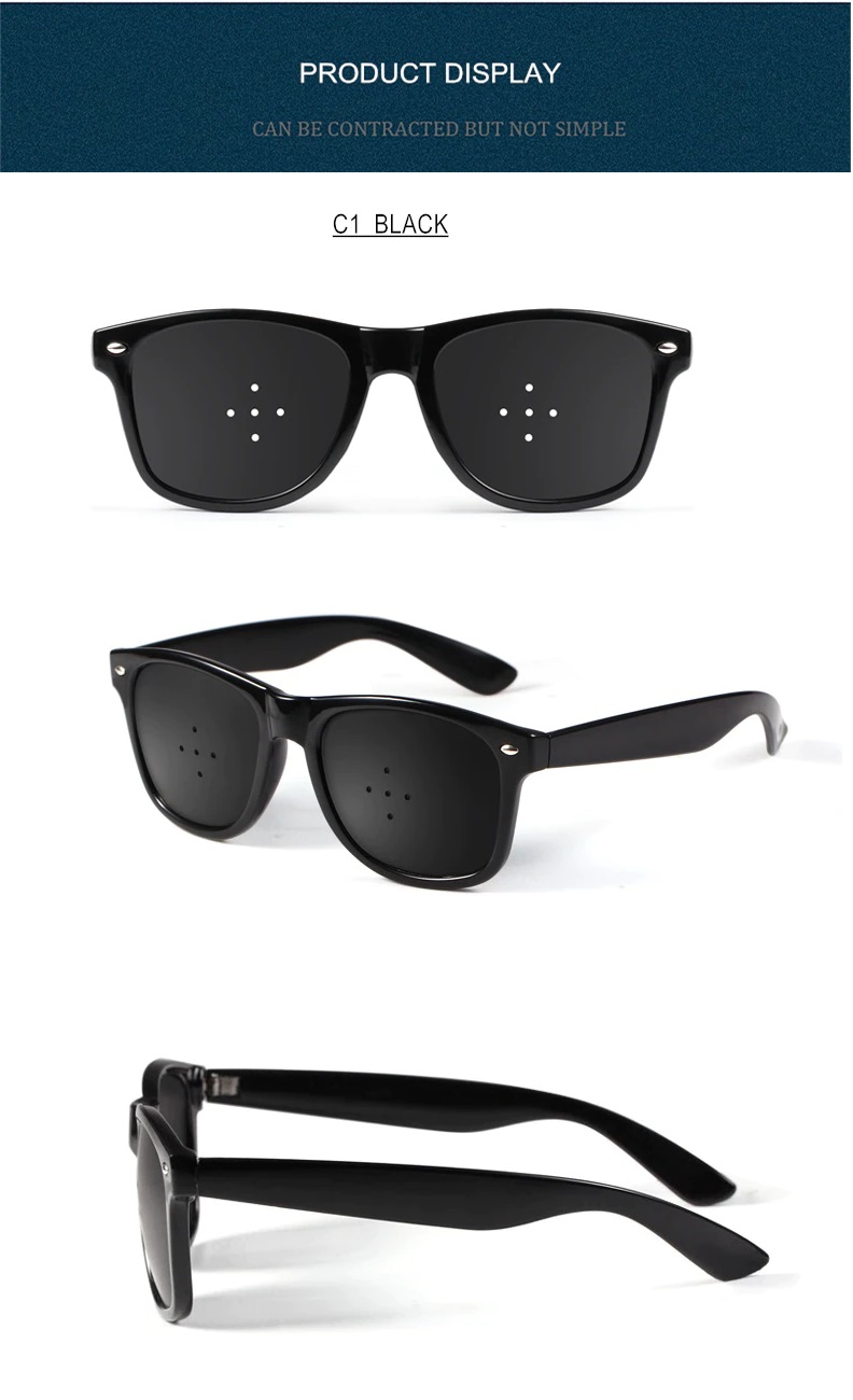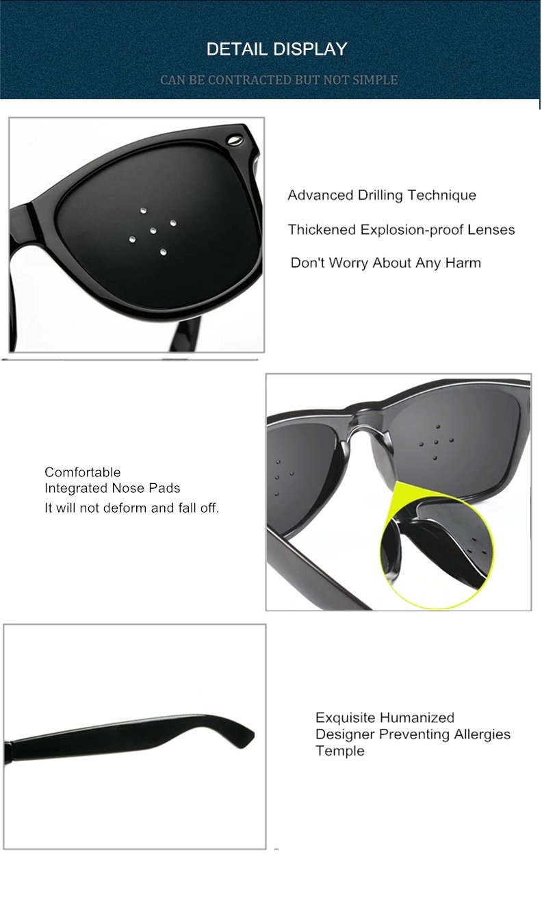 Pinhole glasses are a type of corrective glasses that do not use a lens. Theory is very simple: when the eyes can only look through the small holes, they naturally change focus to a relaxing standard, so the eyeballs are relieved from the previous nervous focus.
