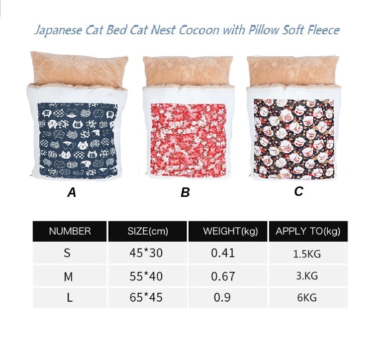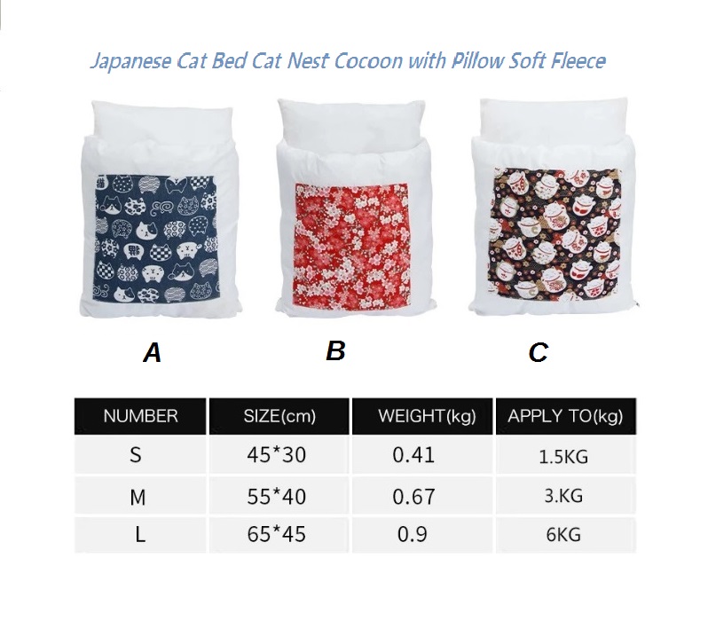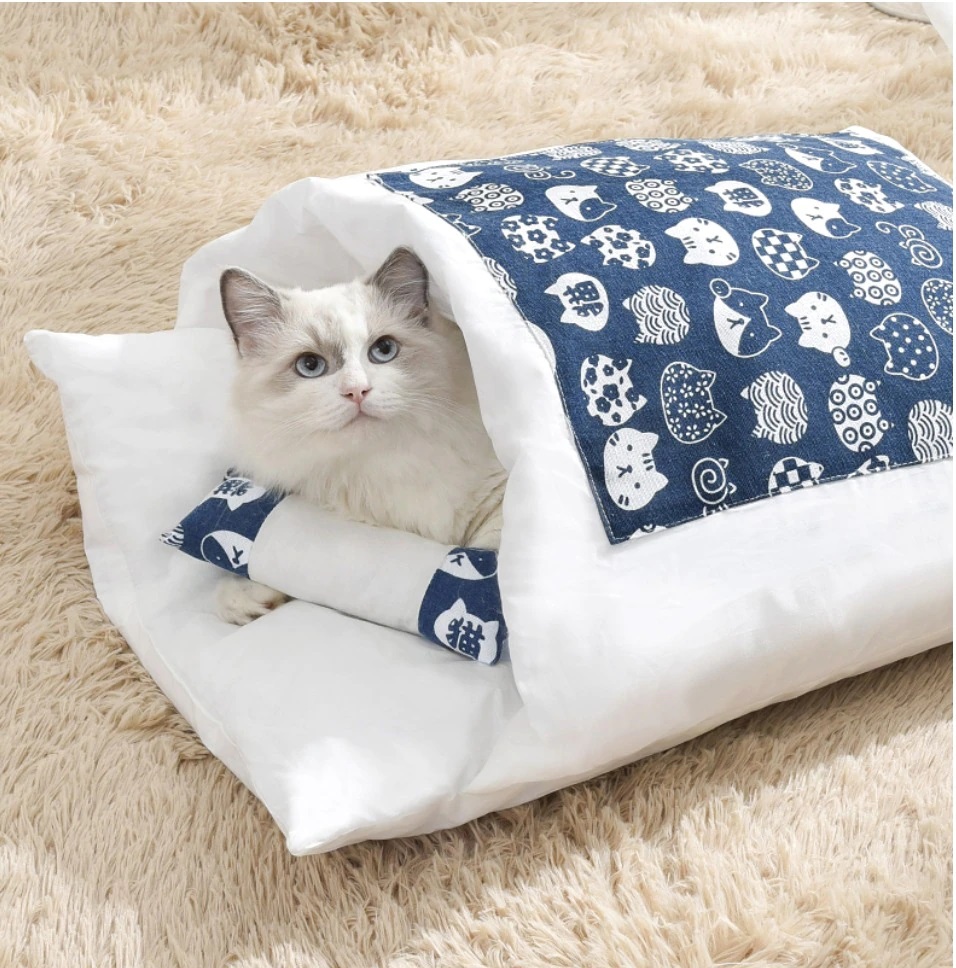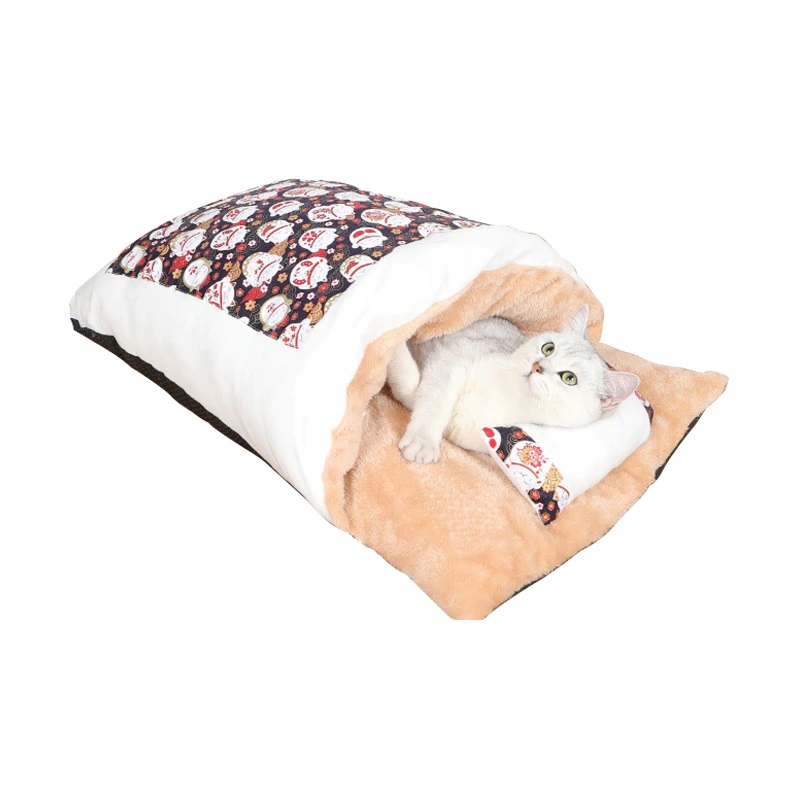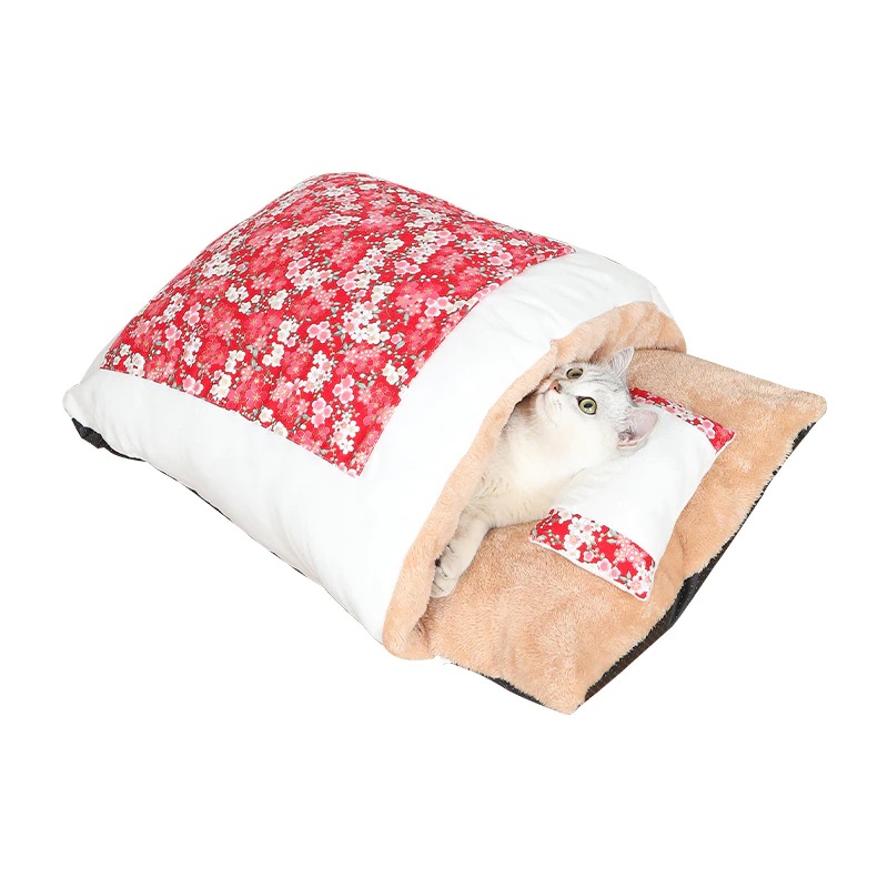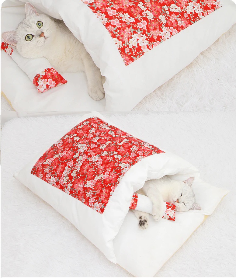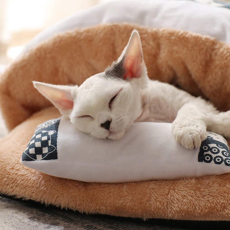 Japanese Cat Bed Cat Nest Cocoon with Pillow Soft Fleece - Washable Quilt Bed